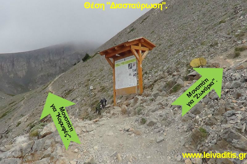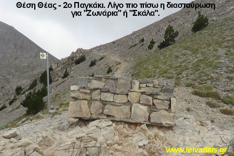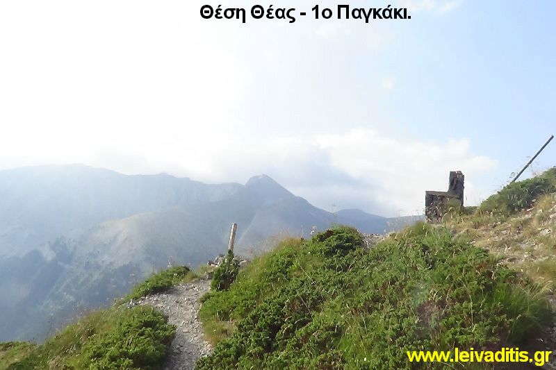 Μετά από 470 μέτρα και 15 λεπτά περπατήματος σε υψόμετρο 2.220 μ. θα συναντήσετε παγκάκι χτισμένο από πέτρες από το οποίο έχετε φοβερή, πανοραμική θέα και βλέπετε τις κορυφές "Καλόγερος" και "Λιβαδάκι" (Εικόνα 2)...