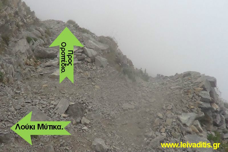Περπατάτε λοιπόν περίπου 45 λεπτά πάνω στα "Ζωνάρια" και έχετε διανύσει 1 χιλιόμετρο και 700 μέτρα και φτάνετε στην είσοδο για το Λούκι του Μύτικα σε υψόμετρο 2.700 μ. (Εικόνα 6)... Πιο μπροστά 250 μέτρα νωρίτερα, έχετε περάσει και το "Λούκι" που οδηγεί στην "Κακόσκαλα" σε υψόμετρο 2.650 μ. Όταν φτάσετε στο Λούκι του Μύτικα συνεχίζετε δεξιά (πάνω στο μονοπάτι δηλαδή) για να φτάσετε μετά από λίγα λεπτά, στο "Οροπέδιο των Μουσών".