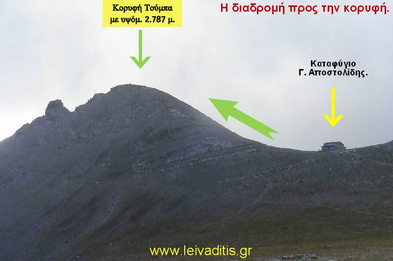 Περνάτε μπροστά από το καταφύγιο και συνεχίζετε αριστερά του προς την πλαγιά που υπάρχει για να ανέβετε στην κορυφή (Εικόνα 3)...