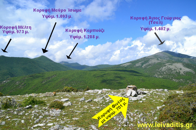 Σε 18 λεπτά περίπου ανεβαίνετε τα τελευταία 800 μέτρα της σημερινής σας περιπέτειας. Σε υψόμετρο 701 μέτρων βρίσκεται η κορυφή του Φινέα από την οποία έχετε πανοραμική θέα και επαφή με τις αξιόλογες γειτονικές κορυφές του (Εικόνα 9).