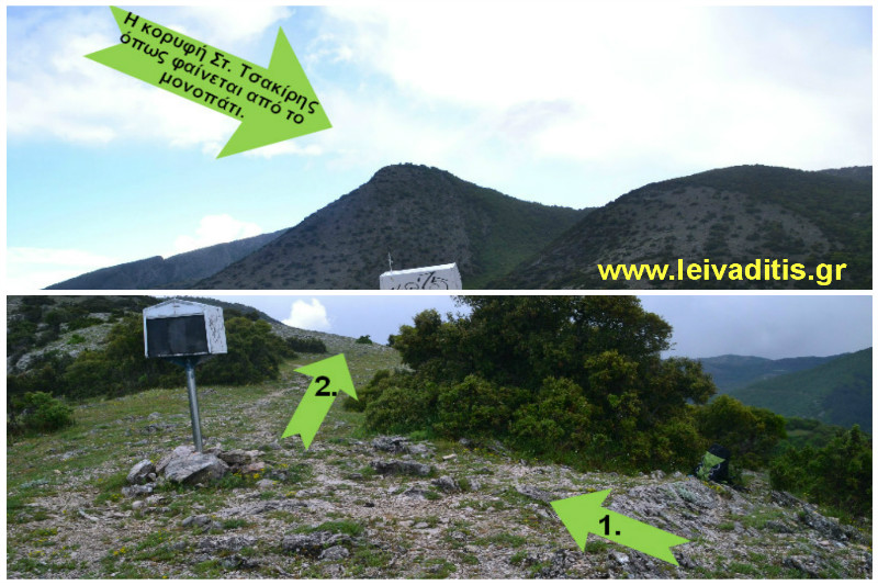 Από εκείνο το σημείο και μετά δεν συνεχίζετε άλλο στο μονοπάτι (το οποίο αν το ακολουθήσετε σας βγάζει στον εγκατελλειμένο οικισμό του Μακάριου κάτι που δεν σας ενδιαφέρει γιατί άλλος είναι ο στόχος σας). Να θυμάστε ότι από εκείνο το σημείο που θα δείτε το μοναστήρι στρίβετε και ανεβαίνετε την πλαγιά που έχετε στο αριστερό σας χέρι και η οποία θα σας οδηγήσει κατευθείαν στην κορυφή (Εικόνα 8).