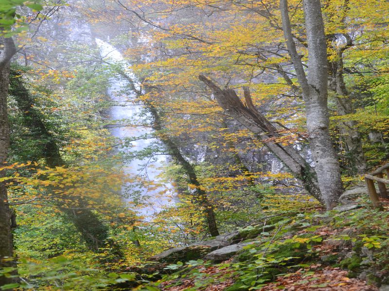 Απομένουν μόλις 60 μέτρα (5 λεπτά) ανηφόρας για το μπαλκονάκι, από το οποίο μπορείτε να θαυμάσετε τον καταρράκτη, σε υψόμετρο 885 μέτρων. Πρέπει να γνωρίζετε ότι έχει ύψος 40 μέτρα και είναι ο μεγαλύτερος των Βαλκανίων σε ότι αφορά την ποσότητα και τον όγκο τρεχούμενου νερού.