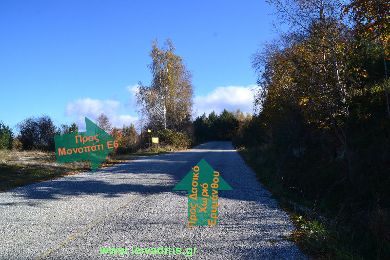 Όπως και να έχει, ακολουθείτε τον ασφάλτινο δρόμο, που φεύγει για Δ.Χ.Ερυμάνθου, για 1 χιλιόμετρο και 200 μέτρα σε περίπου 15 λεπτά. Στο αριστερό σας χέρι θα δείτε μια μικρή κίτρινη πινακίδα, στην οποία λέει ότι "απαγορεύεται το κυνήγι" και θα διαπιστώσετε ότι υπάρχει και μια μικρή αλάνα (σε υψόμετρο 1.205 μέτρων).