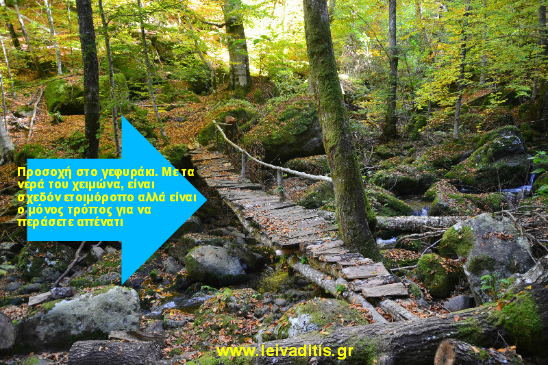 - Επίσης όταν φτάσετε στο σπιτάκι πρέπει να προσέξετε να ακολουθήσετε την δεξιά διαδρομή, για να ξαναβγείτε στο σωστό μονοπάτι που θα σας βοηθήσει να επιστρέψετε στην βάση σας. Η ταμπέλα που λέει Λειβαδίτης εννοεί το χωριό και όχι τον καταρράκτη.
