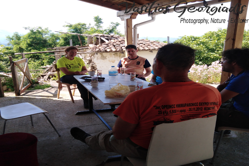Από την τελευταία κορυφή της σημερινής ημέρας μένουν άλλες 3 1/2 ώρες περίπου για να φτάσουμε στον οικισμό του Ωραίου στην περιοχή των πομακοχωρίων σε υψόμετρο 700 μέτρων. Το καφεδάκι είναι απαραίτητο στη πλατεία του χωριού όπως επίσης και μια μικρή ξεκούραση. Εδώ πρέπει να πούμε ότι κάθε μέρα μετά το τέλος της κάθε διαδρομής έρχονται οι Σαμαρείτες του Ελληνικού Ερυθρού Σταυρού και μας ρωτάνε αν έχουμε κάποιον τραυματισμό για να μας βοηθήσουν να τον αντιμετωπίσουμε προκειμένου να συνεχίσουμε τη διαδρομάρα μας (εικόνα 30)...