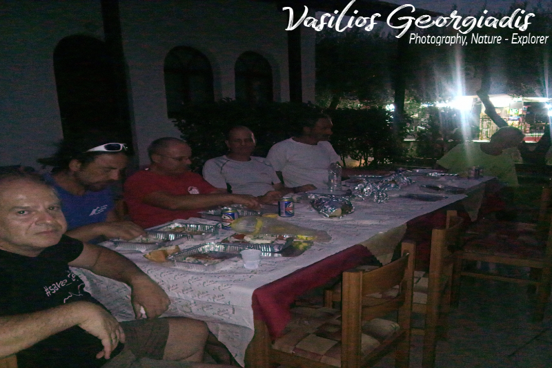 Από την τελευταία κορυφή θέλουμε περίπου 2 1/2 ώρες για να φτάσουμε στην συνοικία της Χρύσας σε υψόμετρο 195 μέτρων λίγο έξω από την πόλη της Ξάνθης όπου στην εκκλησία της Αγίας Φωτεινής γίνεται και η πρώτη μας διανυκτέρευση. Εκεί ξαφνικά εμφανίζεται η σύζυγος Γιάννα με το γεύμα της ημέρας και όλα τα άλλα διαθέσιμα προιόντα προς κατανάλωση. Όσο περνάει η ώρα όμως τόσο γρήγορα τα βλέφαρα αρχίζουν και κλείνουν. Ο υπνόσακοι είναι ήδη στρωμένοι και όποιος δεν έχει δύναμη πηγαίνει με την καρέκλα του μέχρι τον υπνόσακο και αφήνετε στην αγκαλιά του Μορφέα (εικόνα 5)...