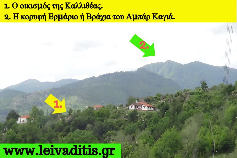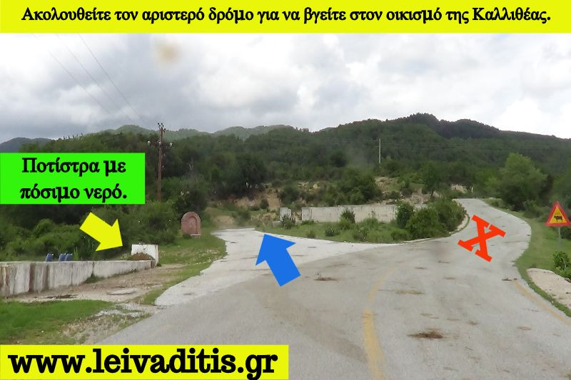 Από τους 2 δρόμους που θα έχετε μπρόστα σας ακολουθείτε τον αριστερό ο οποίος στην ουσία είναι τσιμεντένιος δρόμος σε όχι και πολύ καλή κατάσταση για 1,2 χιλιόμετρα σε περίπου 20 λεπτά και θα σας οδηγήσει στον οικισμό της Καλλιθέας σε υψόμετρο 705 μέτρων. Κάποτε στον συγκεκριμένο οικισμό λειτουργούσε και καταφύγιο του ομώνυμου Πολιτιστικού Συλλόγου το οποίο με το πέρασμα του χρόνου και χάρη στην "καγκουριά" ορισμένων ανεγκέφαλων ρήμαξε τελικά και δεν λειτουργεί καθόλου στις μέρες μας (Εικόνα 9)...