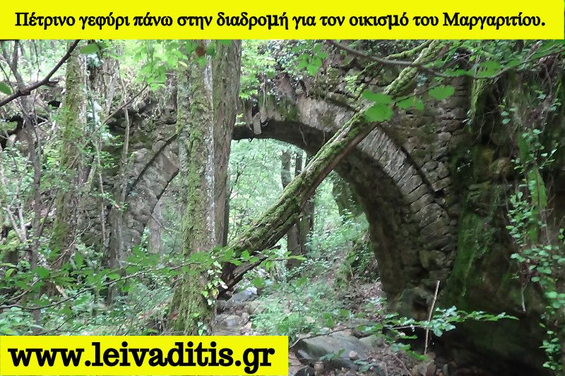 Ας κάνουμε λοιπόν μιά σύνοψη του τι έχετε κάνει μέχρι τώρα. Έχετε περπατήσει 13 χιλιόμετρα σε 4 ώρες και 25 λεπτά και ξεκινήσατε από το υψόμετρο των 400 μέτρων και τώρα βρίσκεστε στο υψόμετρο των 705 μέτρων. Η διαδρομή από δω και πέρα σας οδηγεί στον επόμενο στόχο σας που είναι αυτός του οικισμού του Μαργαριτίου. Η διαδρομή ξεκινάει μέσα από τον οικισμό της Καλλιθέας. Καλό θα ήταν εδώ να κάνετε χρήση του gps για να δείτε από ποιό σημείο πρέπει να στρίψετε δεξιά. Αν φύγετε όλο ευθεία από το χωριό τότε ακολουθείτε την διαδρομή που είναι χαρακτηρισμένη ως Ε6 και θα σας οδηγήσει στον οικισμό της Σταυρούπολης. Όταν λοιπόν βρείτε τη διαδρομή (πρόκειται για ένα καλοσυντηρημένο πέτρινο μονοπάτι) την ακολουθείτε χωρίς φόβο αλλά με πολύ πάθος και μετά από 1,6 χιλιόμετρα θα σας βγάλει σε ένα όμοφο καλοσυντηρημένο πέτρινο γεφυράκι σε υψόμετρο 520 μέτρων και αφού έχετε περπατήσει 40 λεπτά (Εικόνα 10)...