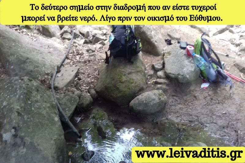 Αφού φτάσετε στη πηγή έχετε άλλα 300 μέτρα περπατήματος για να φτάσετε στον εγκαταλειμμένο οικισμό του Εύθυμου από τον οποίον πια, έχετε πολύ καλό οπτικό πεδίο των Θρακικών Μετεώρων και φαίνεται και η διαδρομή που θα ακολουθήσετε. Από τη γέφυρα του Γεντί Μπορούν μέχρι τον εγκαταλειμμένο οικισμό του Εύθυμου πρέπει να περπατήσετε 5 χιλιόμετρα και 200 μέτρα σε 2 ώρες και 25 λεπτά και βρίσκεστε σε υψόμετρο 453 μέτρων (Εικόνα 8)...