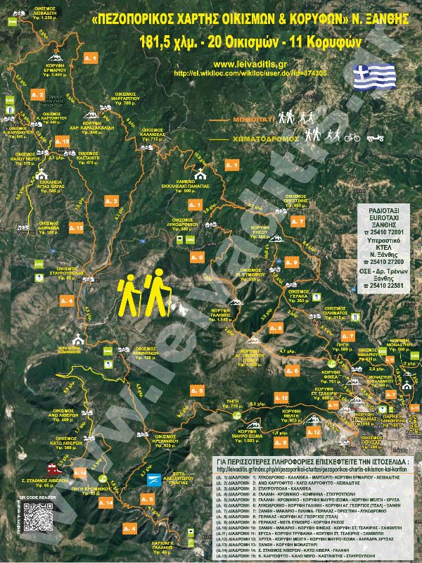 Πεζοπορικός Χάρτης Οικισμών και Κορυφών.