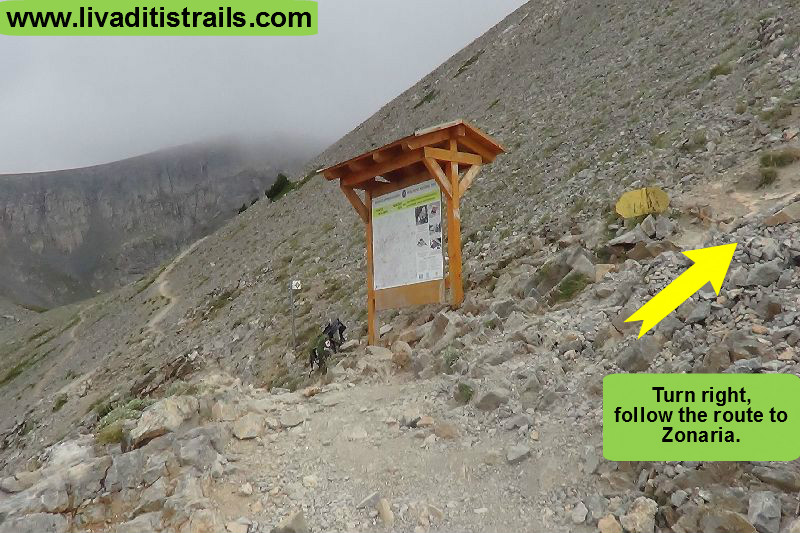 The edge behind the bench is the crossroad to “Skala” or “Zonaria”, where you will arrive after 200 meters of walking (about 10 minutes) at an altitude of 2.480 meters. At the crossroad, turn right to reach the “Plateau of Muses”, one of the most beautiful places of our country (Image 5)…
