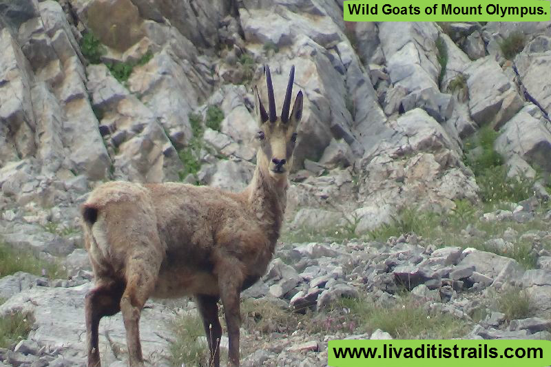 Entering this part of the trail called “Zonaria”, you will have mostly and very closely, rocks on your left. So, you must be very careful if you sense small rocks falling from above. Responsible for these fallen rocks are the wild goats of Olympus (Image 6). They are excellent climbers and quite lucky for being permanent residents of this godly mountain; they probably make fun of us as they see us walking like them or almost crawling…