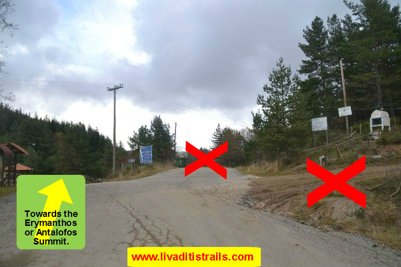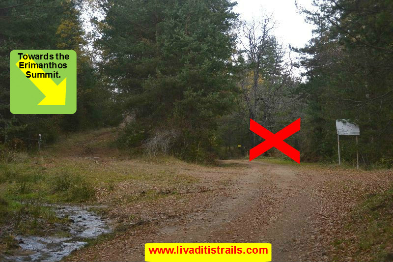 Right after Livaditi (8 km), you will arrive at the Erymanthos Forest Village (altitude 1.315m.).There, the asphalt road ends and a cluster of rural roads begins, where each one has a different destination. Therefore, you start walking on the last street on your left hand (Picture 3).